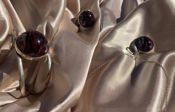 Set consists of a ring, bracelet, sterling silver chain |